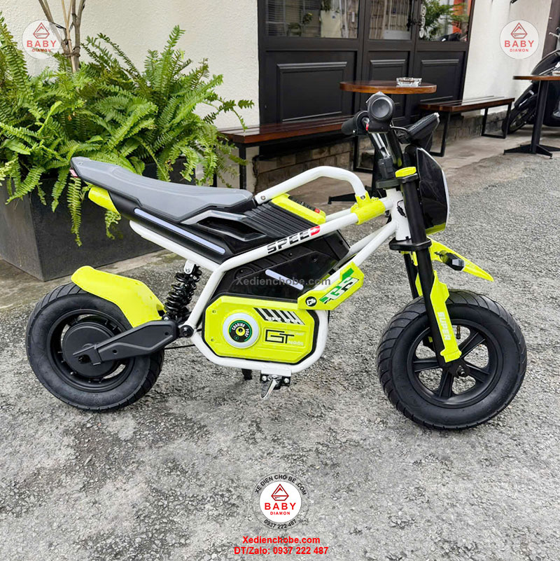Xe cào cào điện trẻ em 24V, MG 2028 được thiết kế kiểu xe mô tô phân khối lớn cào cào, hầm hố, mạnh mẽ, nhưng nhỏ gọn, thích hợp cho bé dưới 70 kí, xe hoạt động tốt nhất với bé 20-30 kg, hoặc từ 7 đến 15 tuổi, chế độ tự lái cho bé, giúp bé chơi vui hơn