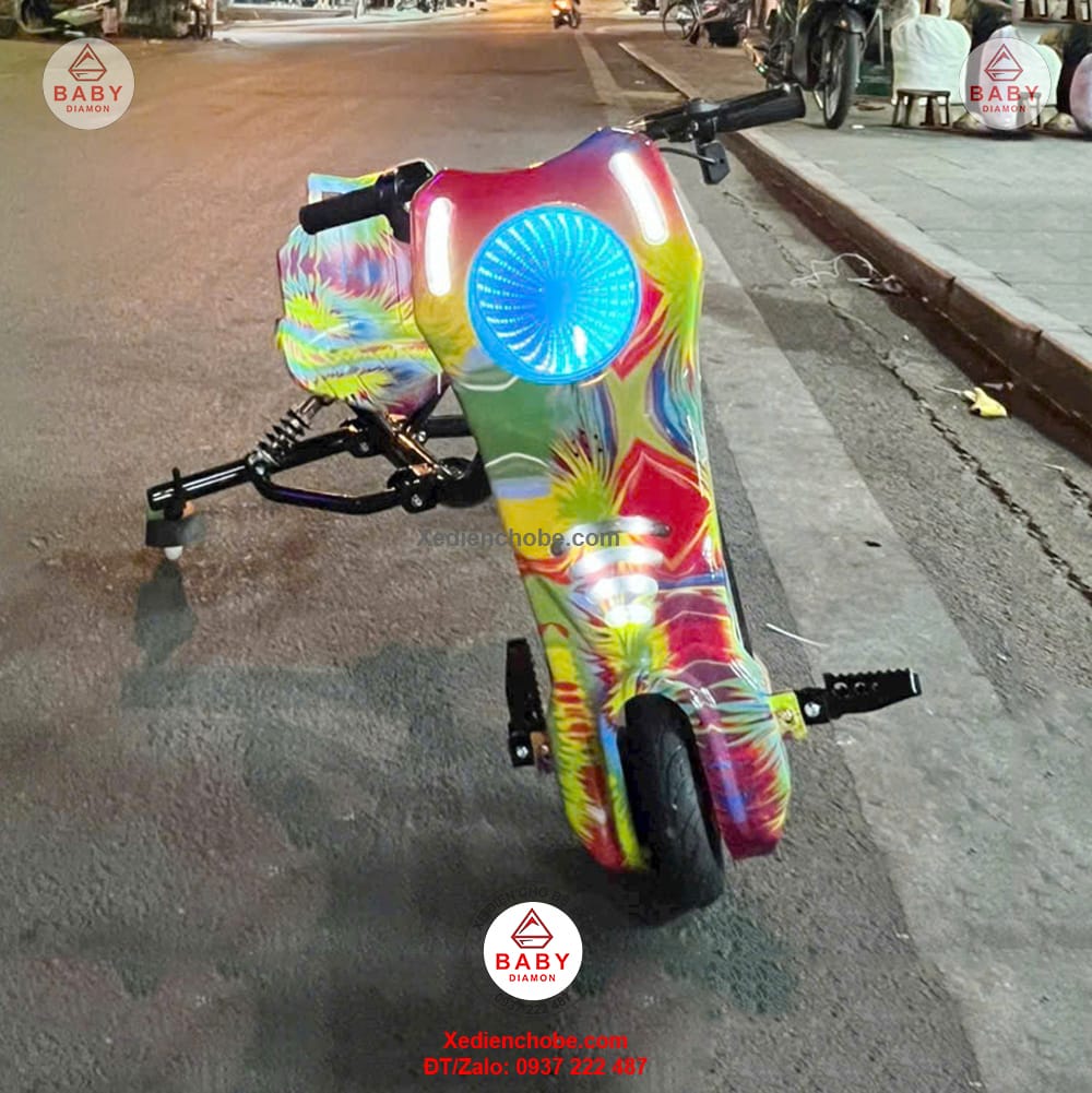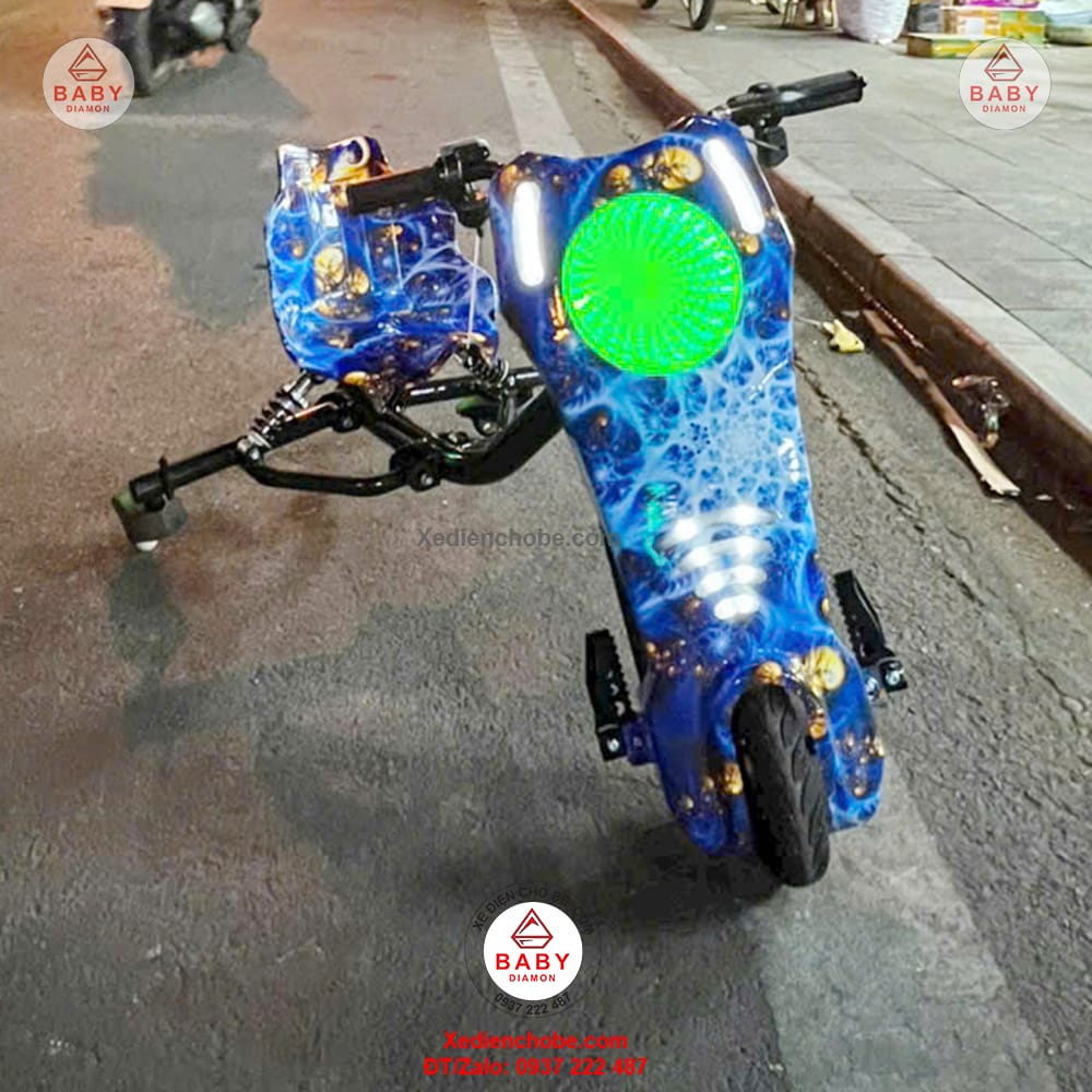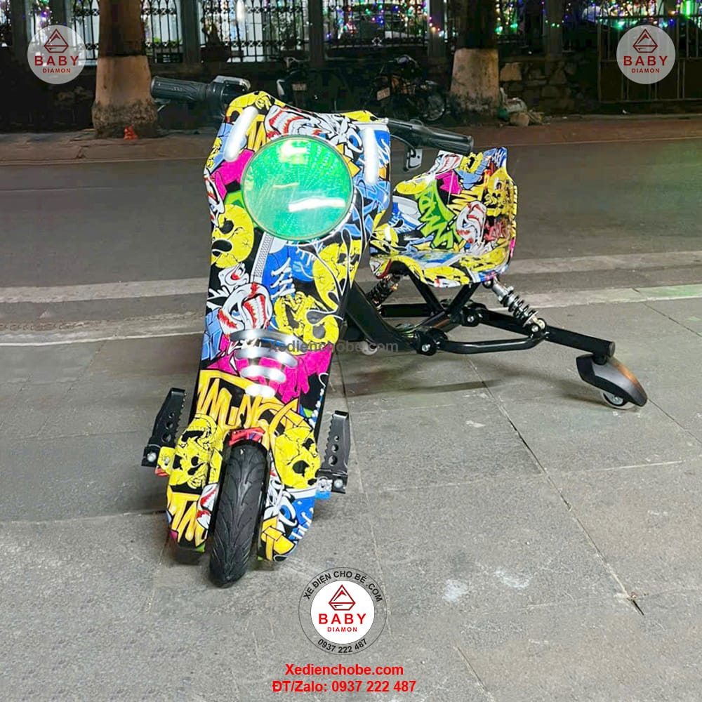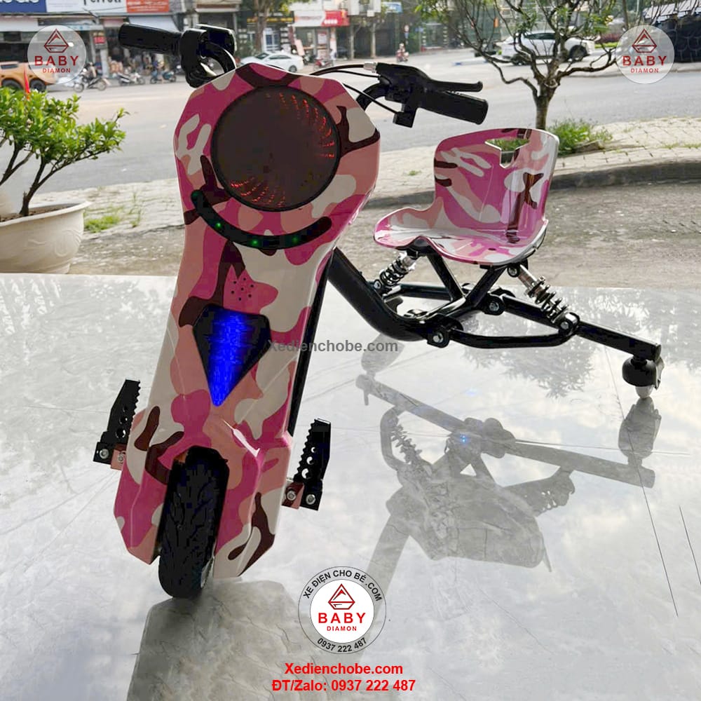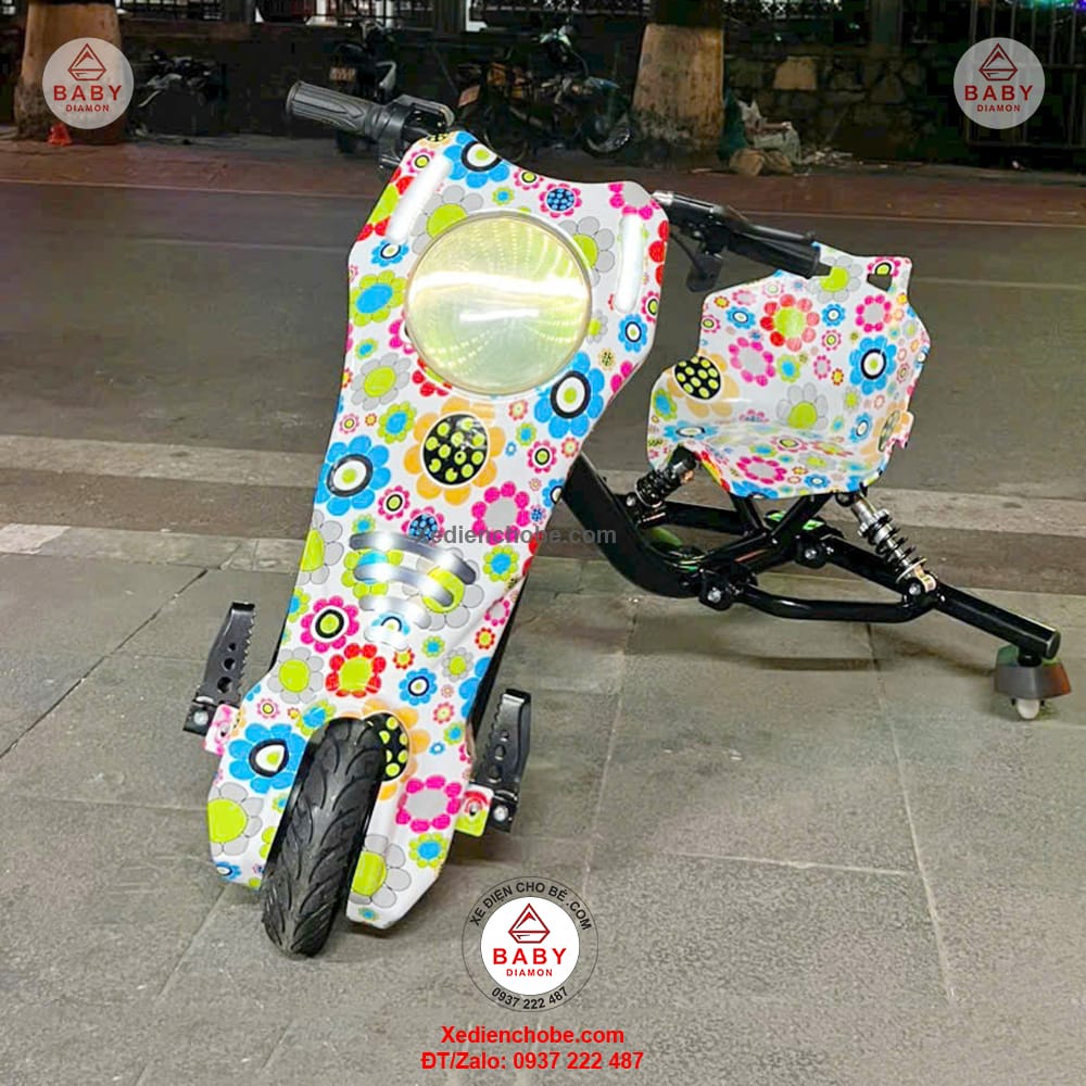 Xe Drift cho bé mắt ếch K3, khung tròn, giảm sốc được thiết kế độc đáo, lạ mắt, kiểu dáng mạnh mẽ, tốc độ cao 10-20km, thích hợp cho bé thích tốc độ và mạo hiểm, phù hợp dưới 90 kí, xe hoạt động tốt nhất với bé 20-40 kg, hoặc từ 5 đến 10 tuổi, chế độ tự lái cho bé và quay 360 độ , giúp bé chơi vui hơn