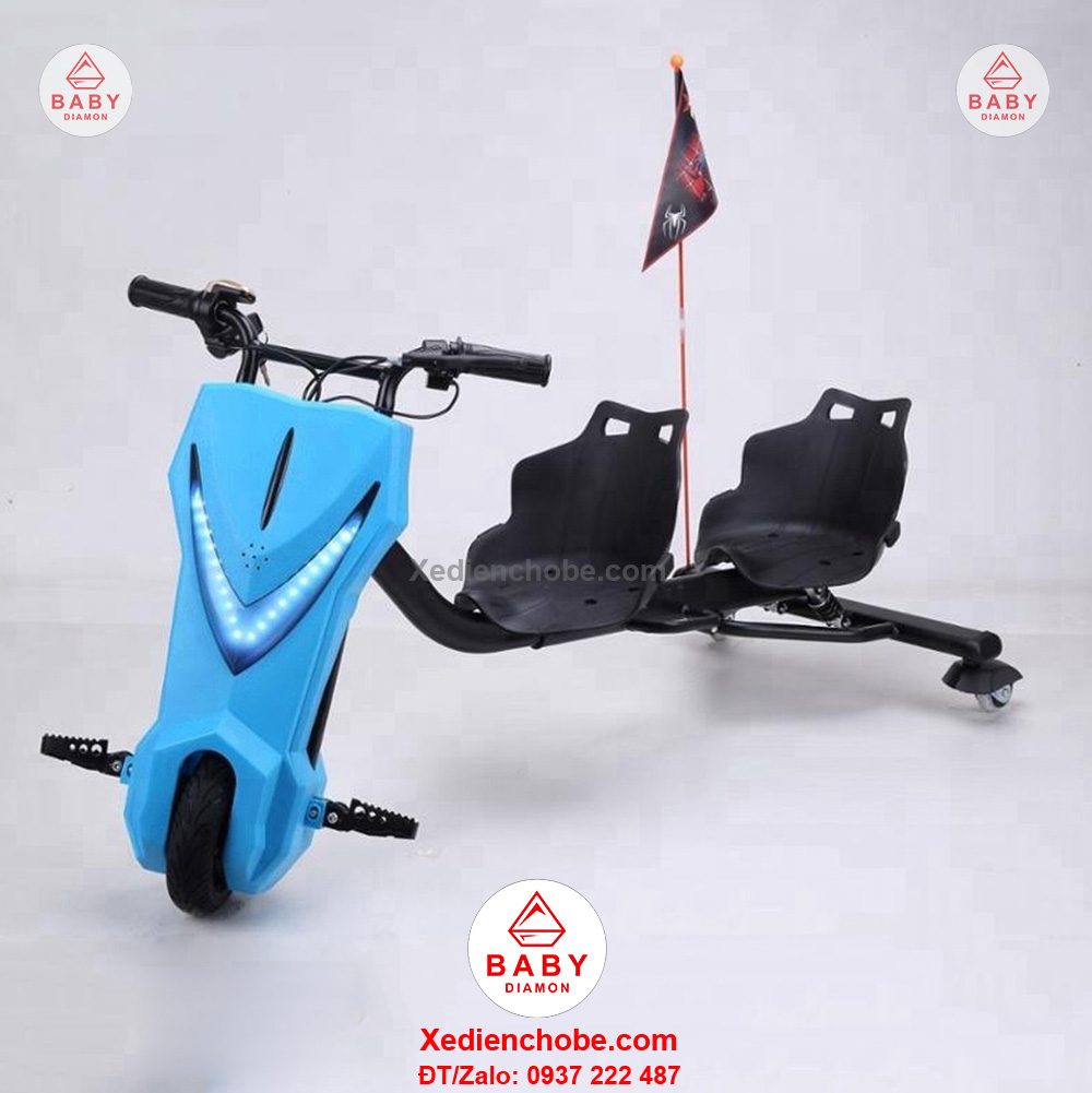 Xe drift xoay 360 cho bé, 2 chỗ ngồi được thiết kế kiểu dáng thể thao có thể chơi cùng lúc 2 bé, tốc độ tối đa đến 15-20 km/h, thích hợp cho bé nhỏ dưới 50 kí, xe hoạt động tốt nhất với bé 30-40 kg, hoặc từ 6 đến 20 tuổi, chế độ tự lái cho bé, giúp bé chơi vui hơn